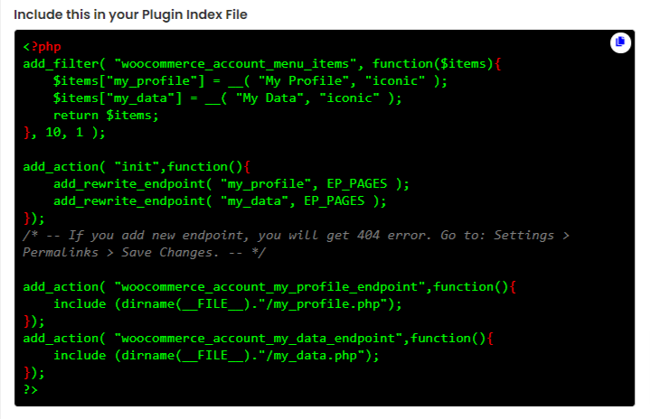 Add New pages to Woocommerce My Account Menu in user side. Add new menu items to woocommerce my account page. Programmatically using custom plugin or code.